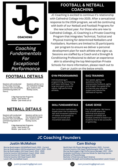 JC Coaching Football and Netball - offerings for 2025